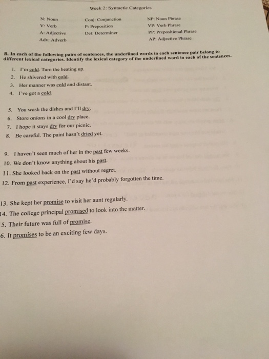 Week 2 Syntactic Categories N Noun V Verb A Chegg Com